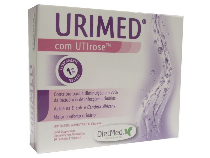 Urimed 30 cápsulas de Dietmed con UTIroseTM, con una acción comprobada para combatir las infecciones urinarias, además de contribuir en la prevención de las mismas.