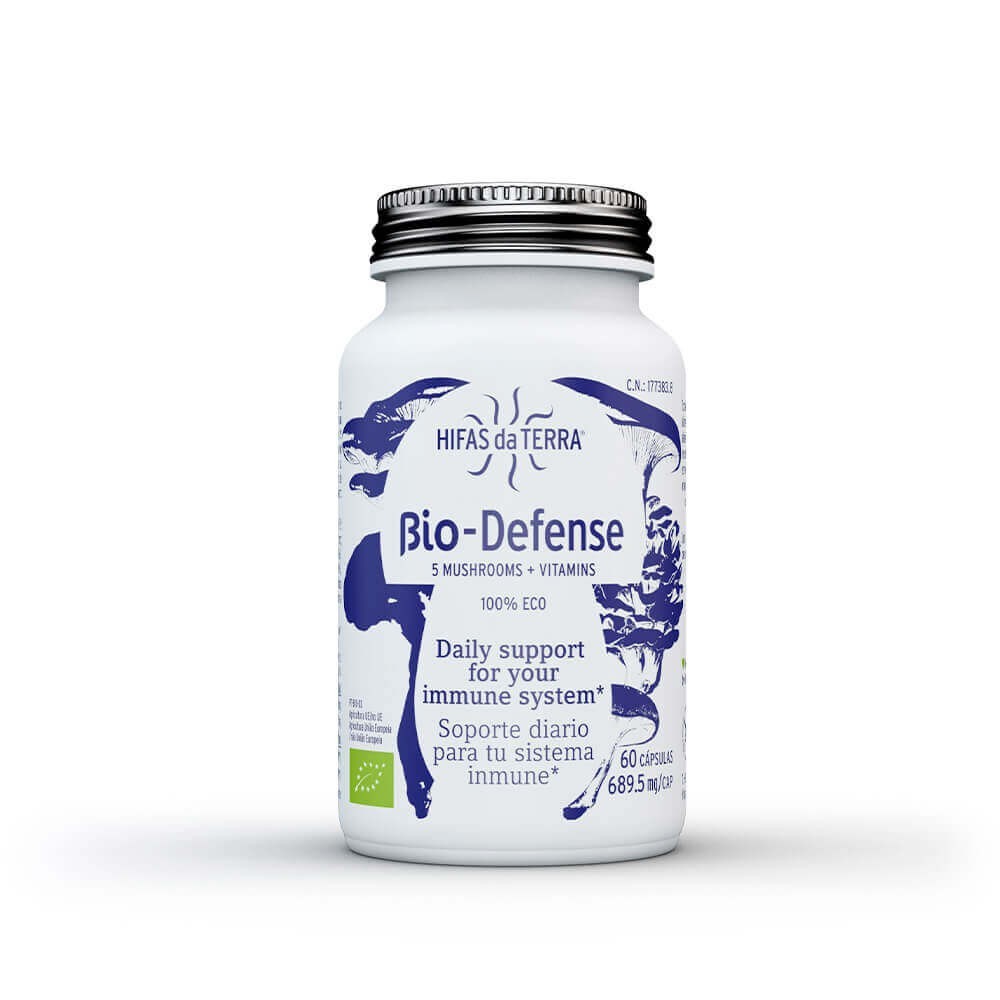 - Bio Defense contiene principios activos concentrados obtenidos de hongos medicinales ecológicos y *vitaminas C y D.