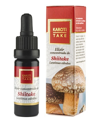 Elixir Shiitake Karoti-Take, Junto con Reishi y Maitake, es uno de los hongos conocidos más polifacético en las propiedades que se le atribuyen, relacionadas con hepatoprotección, reducción de infecciones bacterianas y fúngicas, prevención de tumores y tratamiento de VIH.