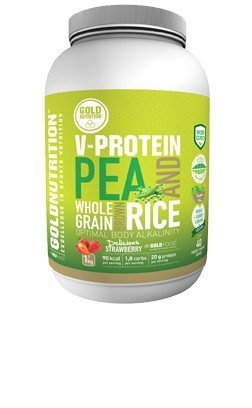 V-Protein GoldNutrition® es un producto rico en proteínas vegetales (83 %), su composición incluye todos los aminoácidos esenciales para el organismo, no contiene azúcares y tiene un bajo contenido en grasas saturadas.