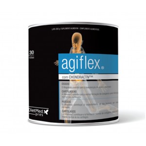 Agiflex es un complemento alimenticio a base de Chondractiv™ (contiene 55% de colágeno tipo II, 12% de sulfato de condroitina y 2% de ácido hialurónico), es decir, una combinación patentada de elementos que tiene una marcada acción condroprotectora.